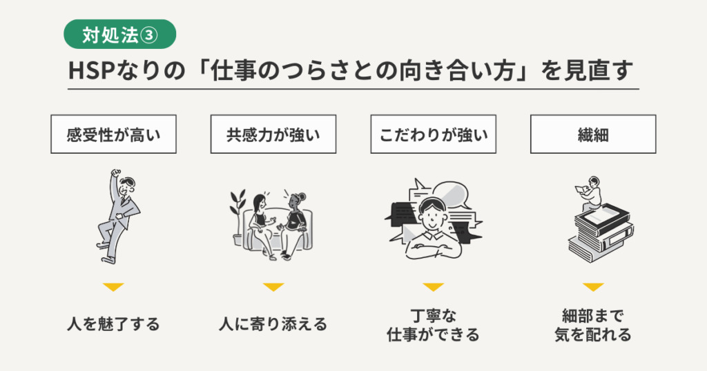 HSPで仕事がつらいとお悩みの方へ、6つの対処方法を解説しました。