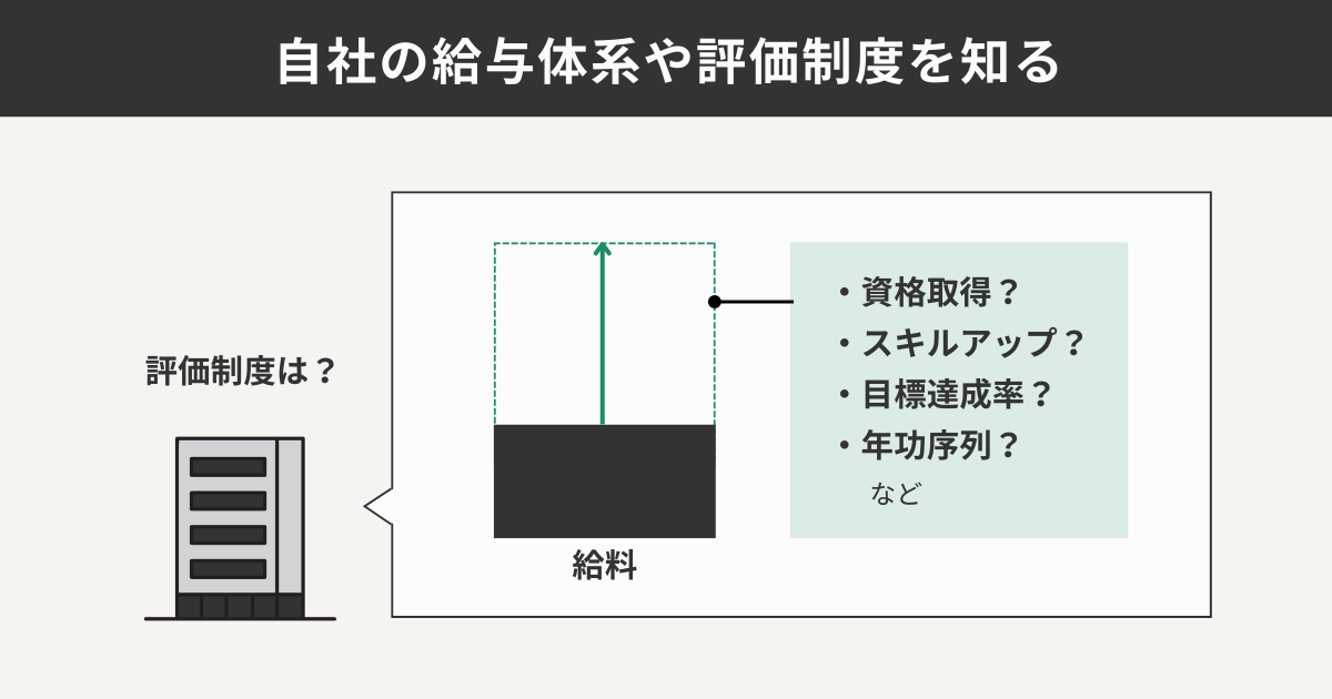 自社の給与体系や評価制度についても知っておきましょう。