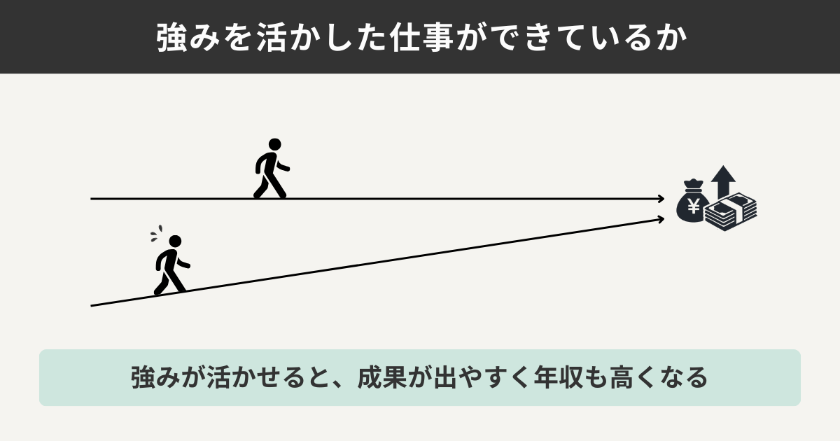 強みを活かせると成果が出るので、給料も上がりやすくなります。