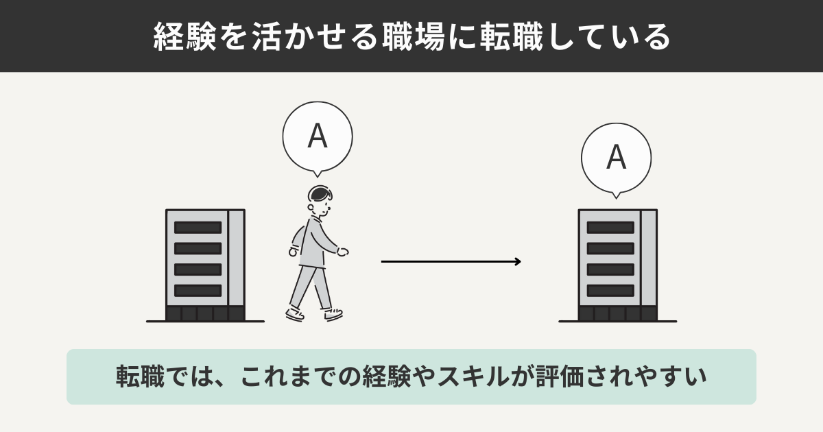 転職では、これまでの経験やスキルが評価されやすいからです。