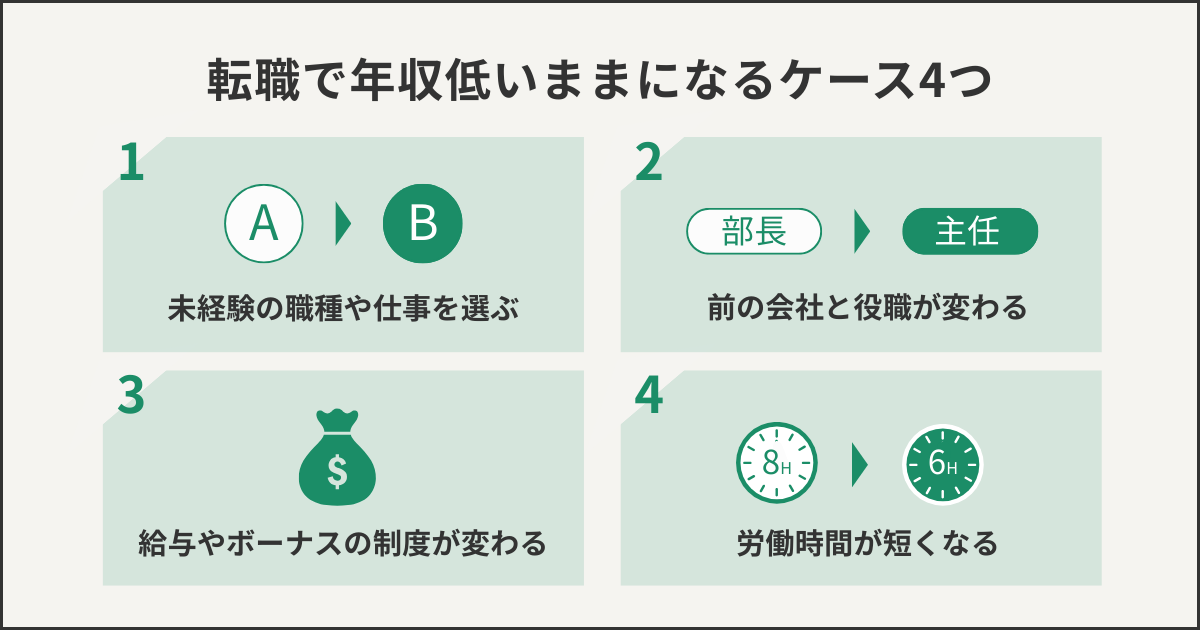転職によって労働時間が短くなり、給与が下がるケースもあります。