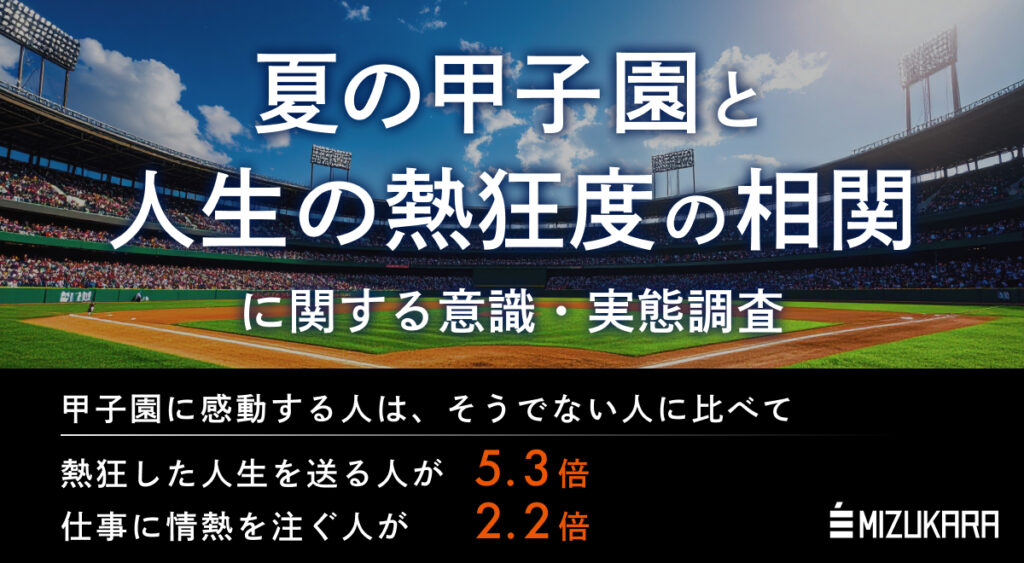 認知科学に基づくコーチングを法人・個人に提供する株式会社ミズカラ(本社:東京都千代田区、代表:山宮健太郎)は、このたび25歳~59歳の男女500名を対象とした「夏の甲子園と人生の熱狂度の相関」に関する意識・実態調査を行いました。