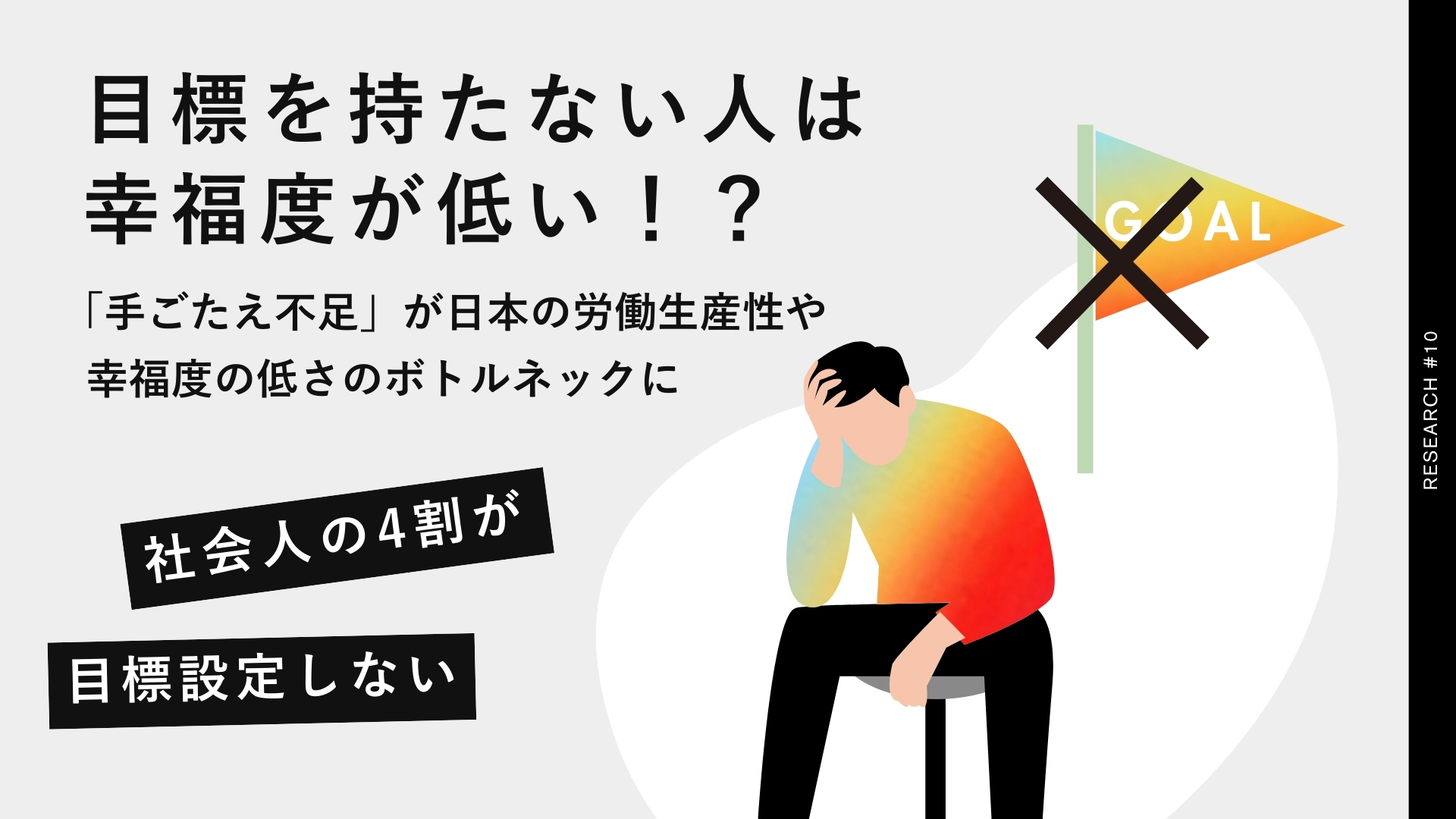 ハーバード大学が2025年に実施した「幸福度調査」によると、日本人の幸福度は22カ国中最下位。これは労働生産性の低さと並んで日本の国家的課題といえます。特にこれからの国を背負って立つ若年層(20-40代)の幸福度が低いのが気になるところ・・ということなのですが、朗報です。今回の調査の結果、人生の目標設定をしている人は明確に幸福度も高いことがわかりました。