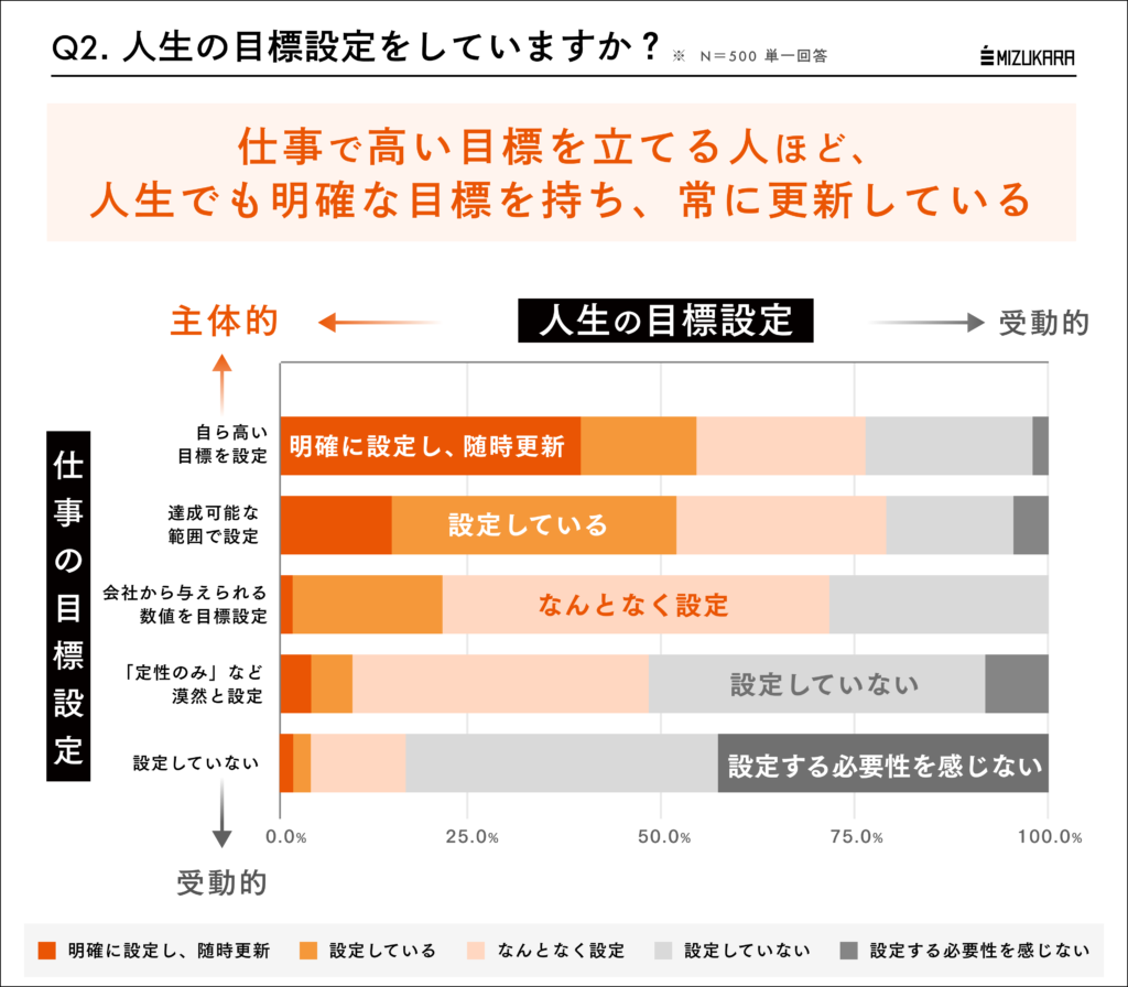 仕事で自発的に高い目標設定をする人ほど、人生の目標設定もクリア