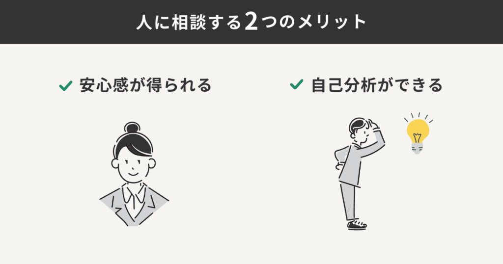 誰かに悩みを打ち明けるだけで、「話を聞いてくれる人がいる」安心感を得られます。
