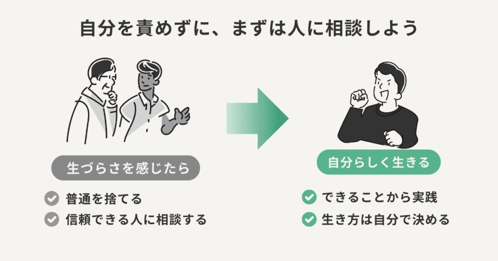 社会に合わせるのをやめ、自分の生きやすい場所を探しましょう。