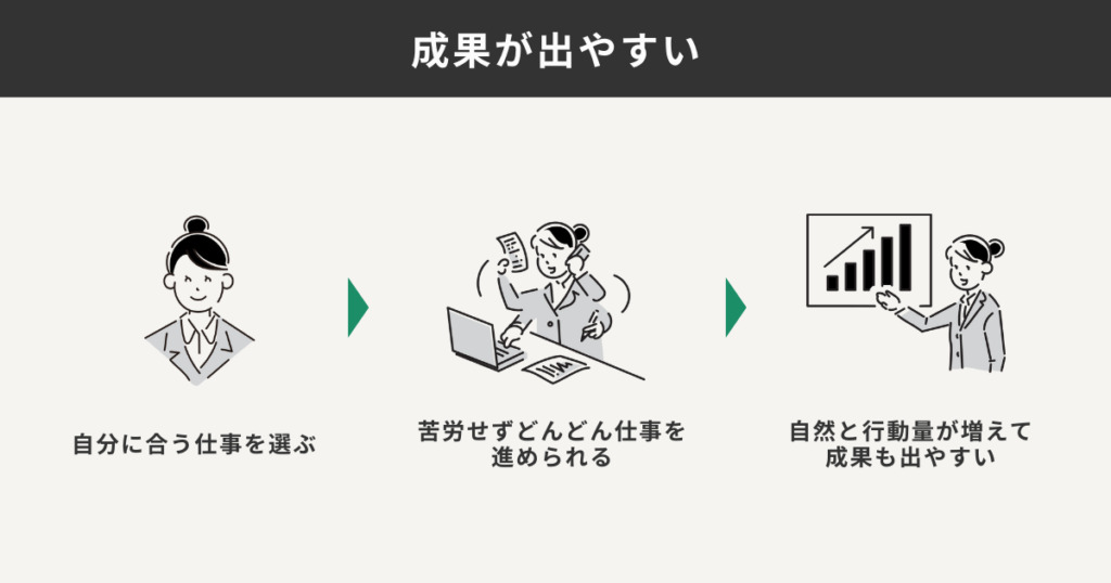 強みを活かせる仕事なら、成果が出るあなたに合う仕事なのです。