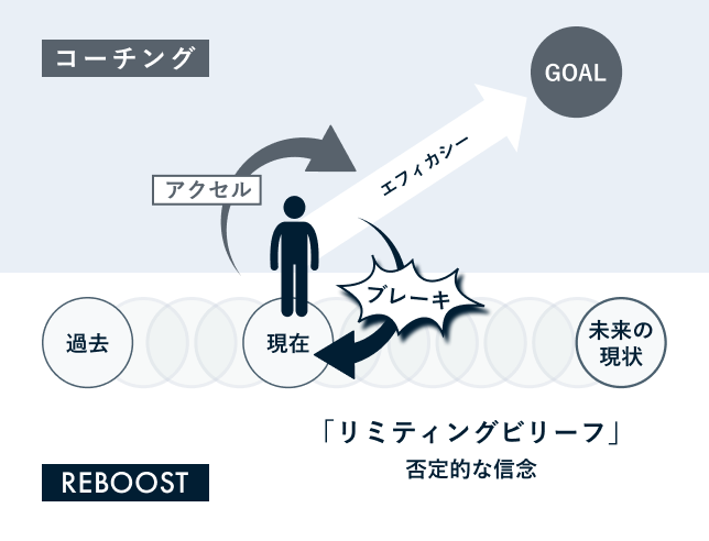 GOALに向かおうとする(アクセルを踏む)瞬間に、リミティングビリーフが特定の「感情(恐れ、不安、焦り)」を引き起こし、行動を無意識に止めてしまうのです。